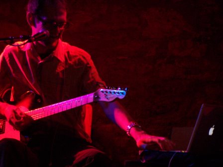 Gordon Macintyre has taken the opposite route to his guest act. From a 4-piece band (i.e. ballboy) to a largely solo affair, this isn’t new territory for him, since he's performed many a gig alone with just acoustic guitar. Tonight it’s electric in many senses though, and he’s not completely alone - the warm glow of an Apple lights the area to his left, with iBook, MIDI interface and assorted electronic gubbins. He opens oddly with ‘I Wrote This Song in Garageband’ which sums up the evening, his new material and new pseudonym - the result of ”too many songs” - showing what a prolific songwriter he is (a new ballboy album is also in the offing, fear not). As ever it’s tales curious and mundane - one about “old blokes getting pished”, ‘Ghosts’ ponders the souls of people who due to “one drink too many, or too few” or “missed trains” never take form in the first place, and he debuts his first song ever about Edinburgh and the curious city it is including headstanding street performers frightening old women.