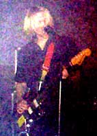 Nope, 'interesting' though that might be, we get exactly what it says on the Urusei tin. Some crowd-pleasers to start with - the moshpit being particularly pleased with Glo Starz and Pow R Ball, as the next few songs rush by in a tide of feedback and sweat. Fergus at some point announces that they have a load of new songs to air, but no-one seems to either notice the difference or care. Song titles are true to form - Silver Dragon, Uji Bomb - and musically they're likewise none too dissimilar to previous efforts. The new single Louche 33 drops the tempo a little, and a little worryingly it's no more catchy than the rest of the new songs in the set. Maybe it's a grower? We get the likes of Strategic Hamlets with its Fall-like bounce and (of course) Slain By Elf whose slow guitar slide gives some respite from the by-now relentless slam-dancing at the front. But in a live setting the kids just wanna dance, and such only Siamese will do as a closer. "I've been trying to destroy this guitar for 8 years" declares Graham before inserting drumsticks under the strings and proceeding to give us his best Keith Moon impression. Once the feedback has died down the Pete Townsend tin him takes over and finishes off the job, the trusty axe decapitated. But what more would you expect - their music will leave you deafened and slightly bruised, chances are it'll even unblock your drains and clear your sinuses. But the all new Urusei Yatsura isn't just there for the nasty things in life, you can be sure of that. 'Stylised' photos of the band due to the venue's insistence of using life-threatening quantities of smoke effects... |